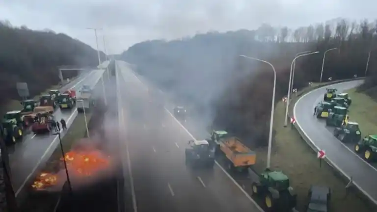 Los agricultores belgas bloquean la autopista E411, entre Bruselas y Luxemburgo, con tractores. Los manifestantes dicen que el pacto comercial del Mercosur permitiría la entrada de productos sudamericanos más baratos. La protesta coincide con la votación prevista por los embajadores de la UE para aprobar el pacto. El bloqueo ha llevado a importantes retenciones de tráfico en la zona durante varias horas. La movilización coincide con una votación prevista sobre el pacto por los embajadores de la UE. Los agricultores advierten que el pacto conduciría a la competencia desleal y pondría en peligro el futuro del sector agrícola local. Los embajadores de la UE se reunirán en Bruselas el jueves.
