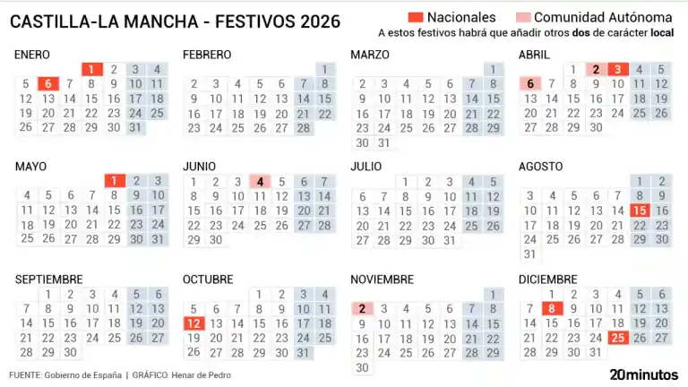 Calendario laboral Castilla-La Mancha 2026: el siguiente festivo dejará un macropuente de cinco días