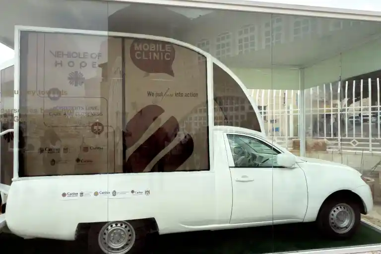 El papamóvil de Francisco convertido en clínica llega a Belén y espera el permiso de Israel para entrar en Gaza