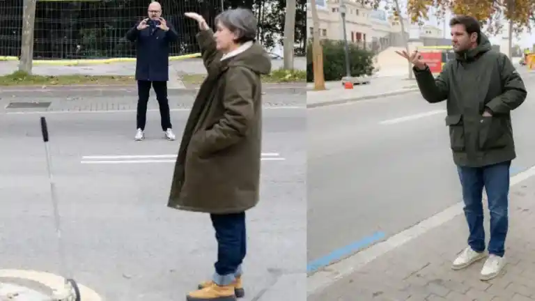 Un equipo de France Télévisions y ASO toman medidas en Montjuïc, final de las dos primeras etapas