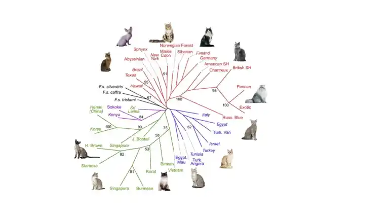 Las razas felinas derivan casi siempre de combinaciones recientes de unos pocos grupos fundacionales.