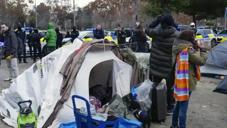 Los desalojados del instituto B9 de Badalona se instalan bajo la C-31 por las fuertes lluvias