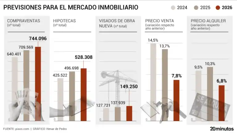 Se espera que las compras crezcan un 4,9% el año que viene, después de un 2025 con un volumen de operaciones no visto desde la burbuja, según las previsiones de Pisos.com.