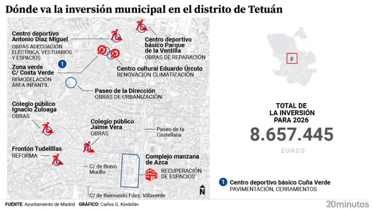 Ordenar el Paseo de la Dirección, recuperar Azca, el frontón de Tudelillas y la reforma del Jaime de Vera: la inversión en Tetuán en 2026