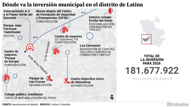 Terminar el túnel de la A-5, entorno de Ermita del Santo, el parque Las Cruces y dos centros de mayores: Latina lidera la inversión en 2026