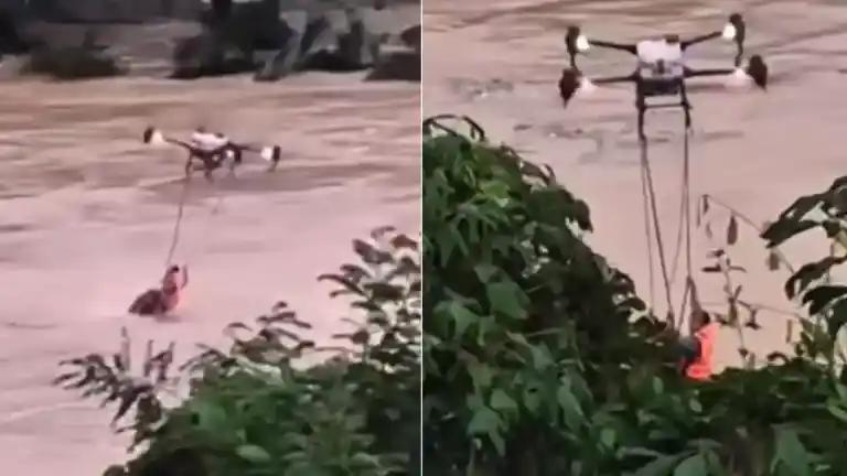 Un dron logra sacar de un río inundado a un hombre a punto de ahogarse