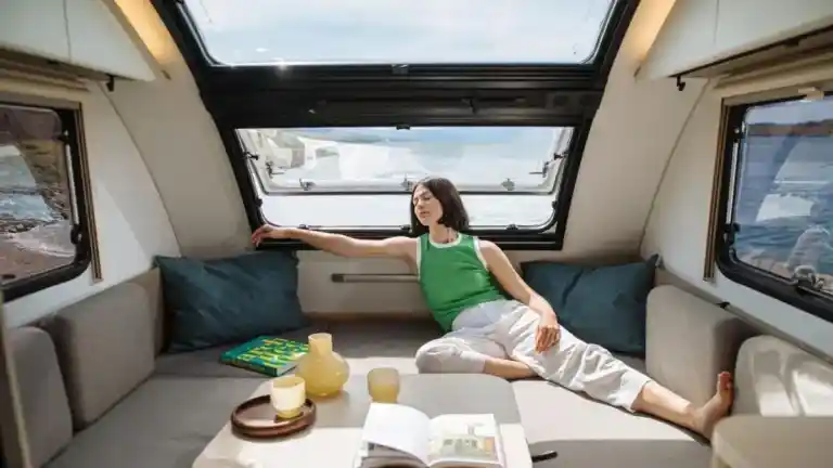 Una caravana compacta para viajar con confort y fácil de maniobrar: tiene cama de matrimonio, ventanales panorámicos y calefacción